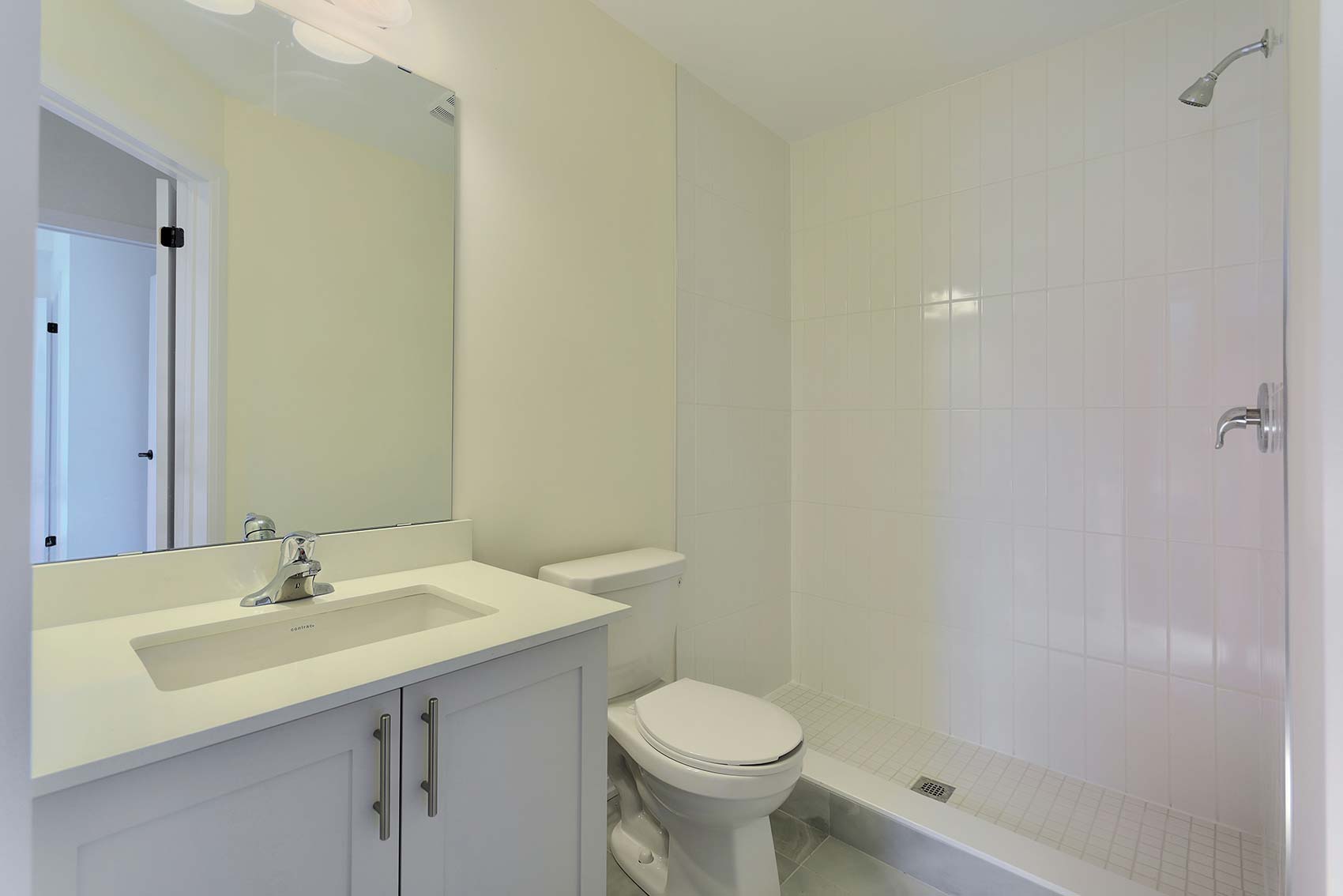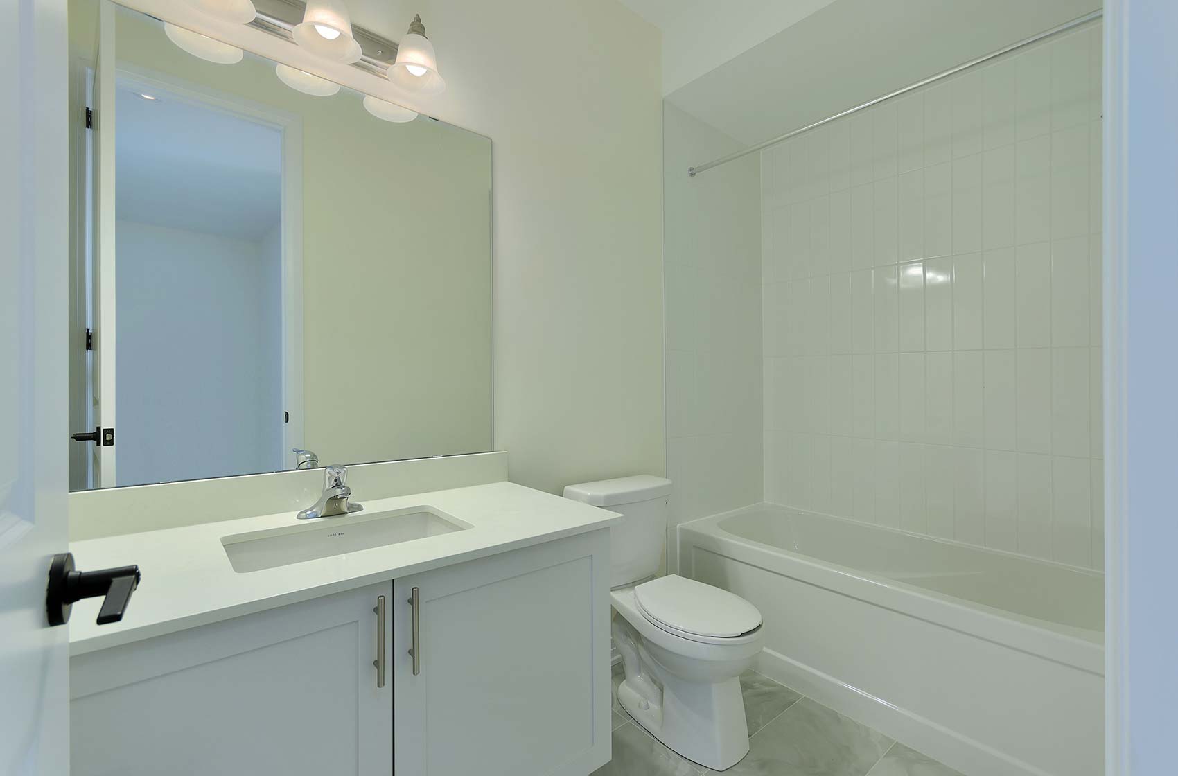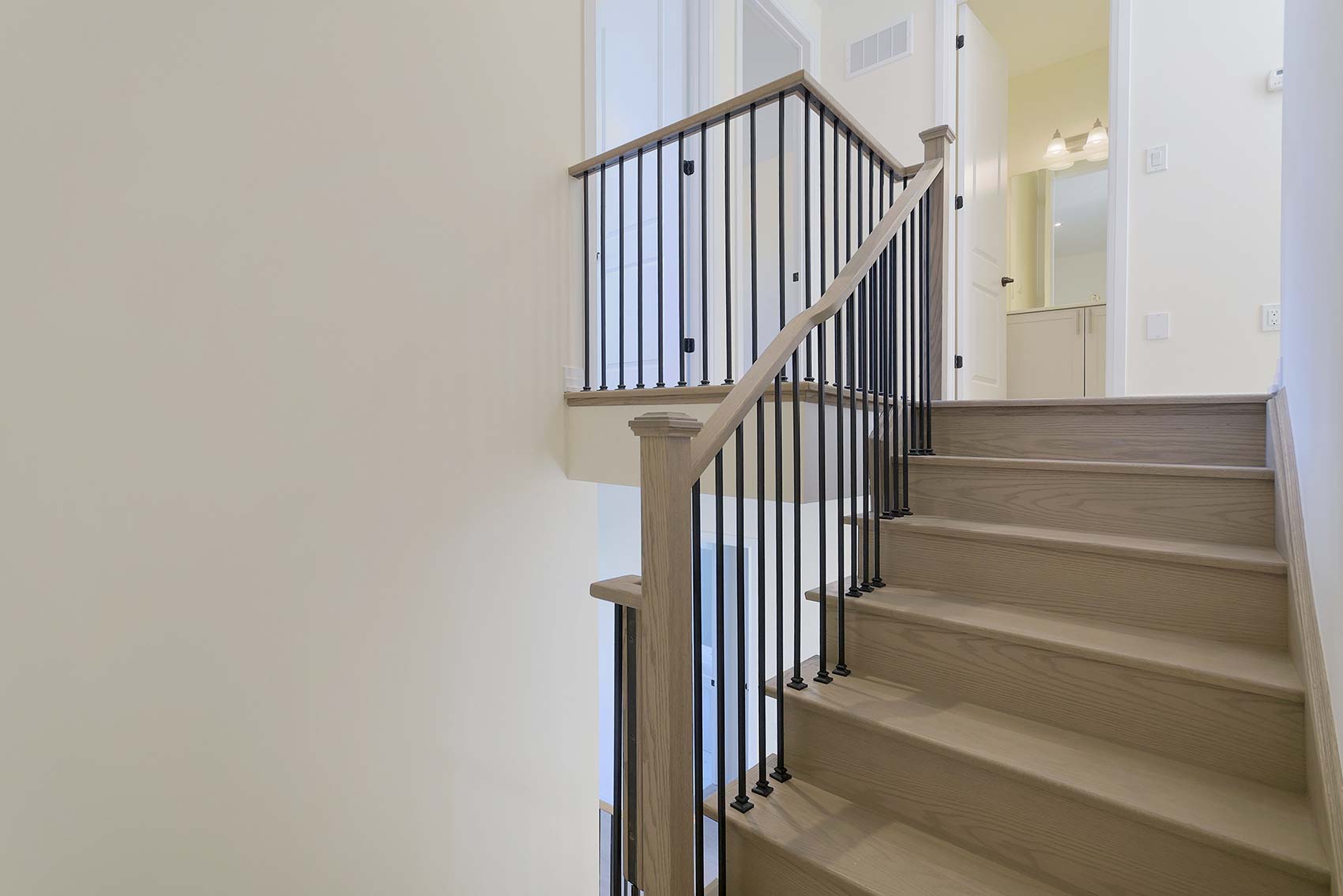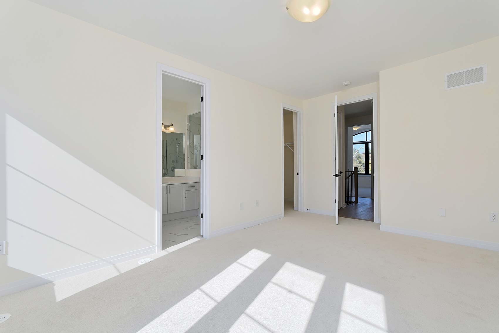 Upstairs, the primary bedroom includes its own balcony, a walk-in closet, and a spa-inspired 4-piece ensuite. Two additional bedrooms share another full bathroom, with extra hallway storage provided by a linen closet.